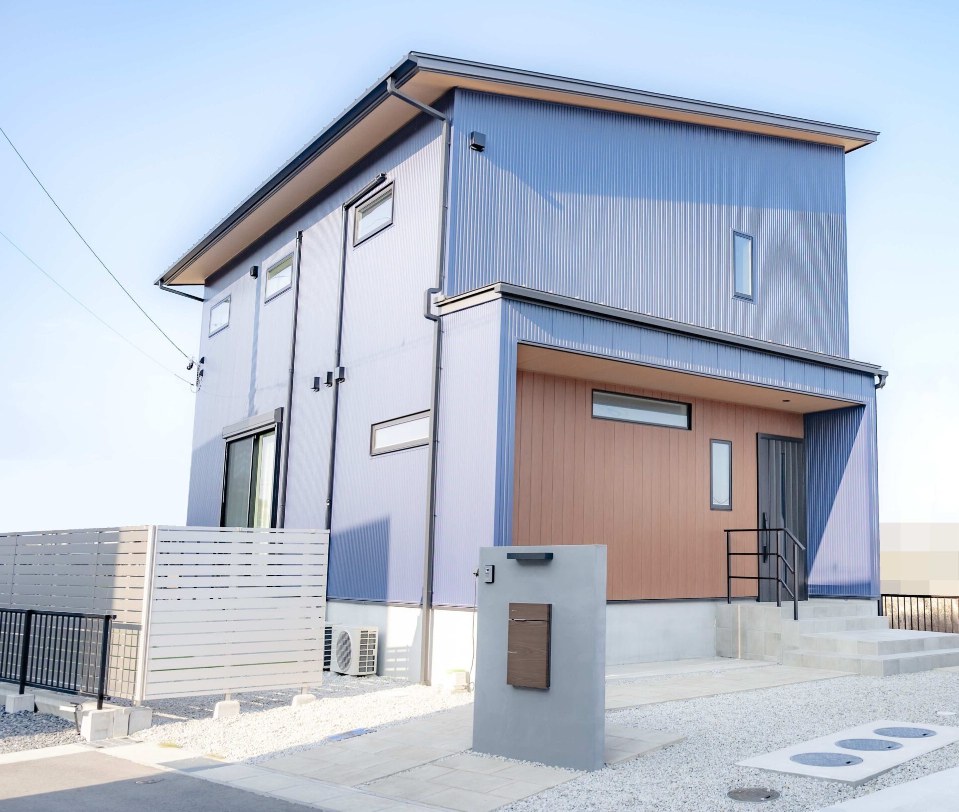 爽やかな晴天のような外壁の新築外構をさせていただきました。