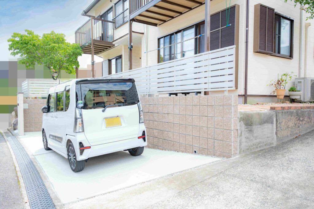 新たにブロックを積み、フェンスを設置。土間を打って、駐車スペースが広がりました