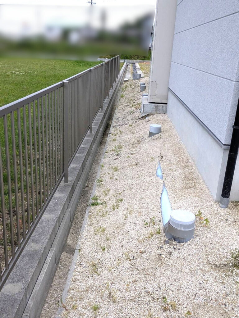 土地の形状により土が流れてしまう状態だった家の周りも、高さをそろえしっかりと土留めをしたので、むき出しになり始めた配管を守ることができました👍